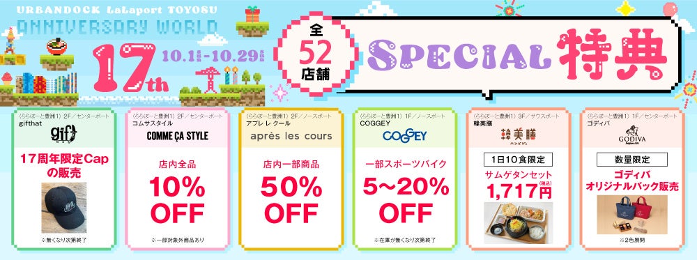 三井ショッピングパーク アーバンドック ららぽーと豊洲(運営:三井不動産商業マネジメント株式会社)は2023年10月に開業17周年を迎えます。日頃よりご愛顧いただいておりますお客様へ感謝を込めて、