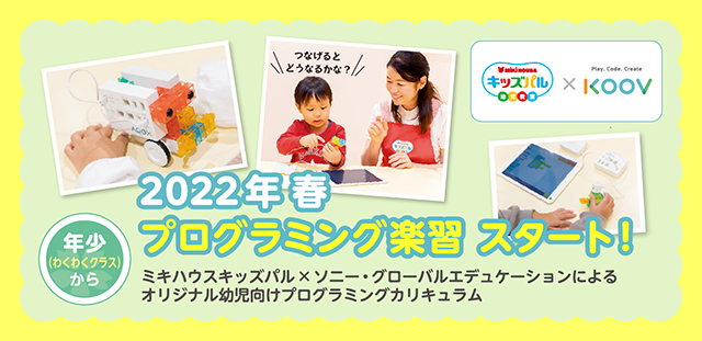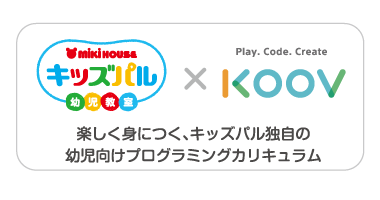 2020年から小学校でのプログラミング授業必修化など、子どもを取り巻く教育環境の変化を踏まえ、ミキハウスキッズパルのカリキュラムと、ソニー・グローバルエデュケーションのロボット・プログラミング学習キット「KOOV®」が持つワクワクするような仕組み、デザインの洗練性を組み合わせることで、幼児が楽しく学べる「プログラミング楽習」を実現いたします。