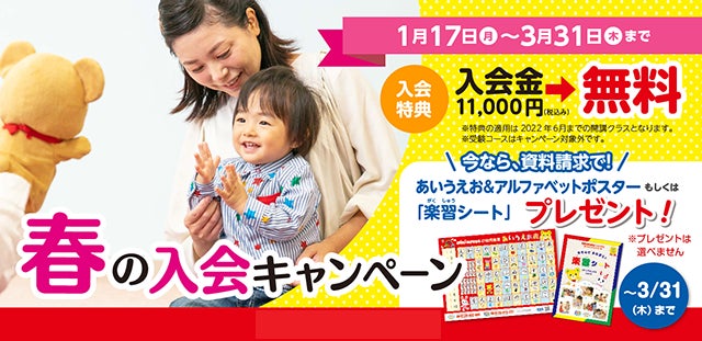 1月17日(月)~3月31日(木)まで、入会特典として入会金11,000円が無料になる「春の入会キャンペーン」を実施いたします。