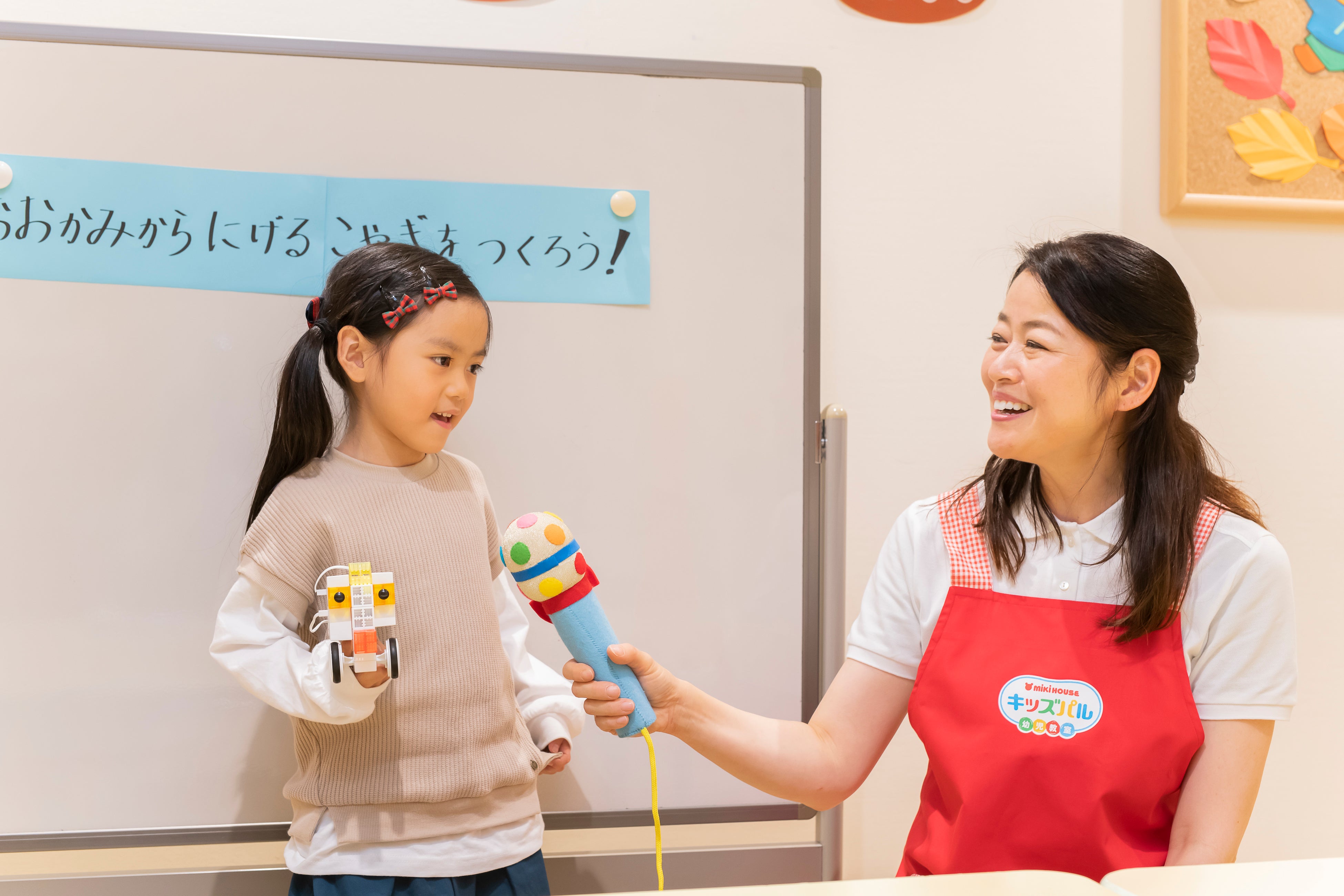 また、テーマに沿って調べて表現する「発表活動」や、ミキハウスキッズパル独自の「プログラミング楽習(がくしゅう)」で、お子さまが幅広い探究心を持てるよう導きます。