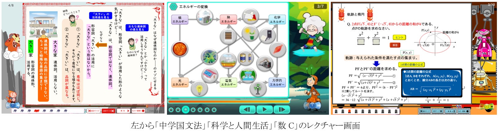 今回は、苦手とする生徒が多い「国文法」や高卒認定資格など理科の単位取得に対応する「科学と人間生活」、今年度の共通テストに新設された「数C」の3科目のコンテンツを拡充します。