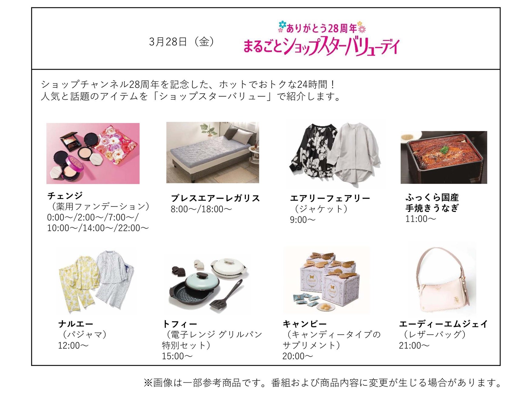 ショップチャンネル 3月28日(金)は、「ありがとう28周年 まるごとショップスターバリューデイ」を放送