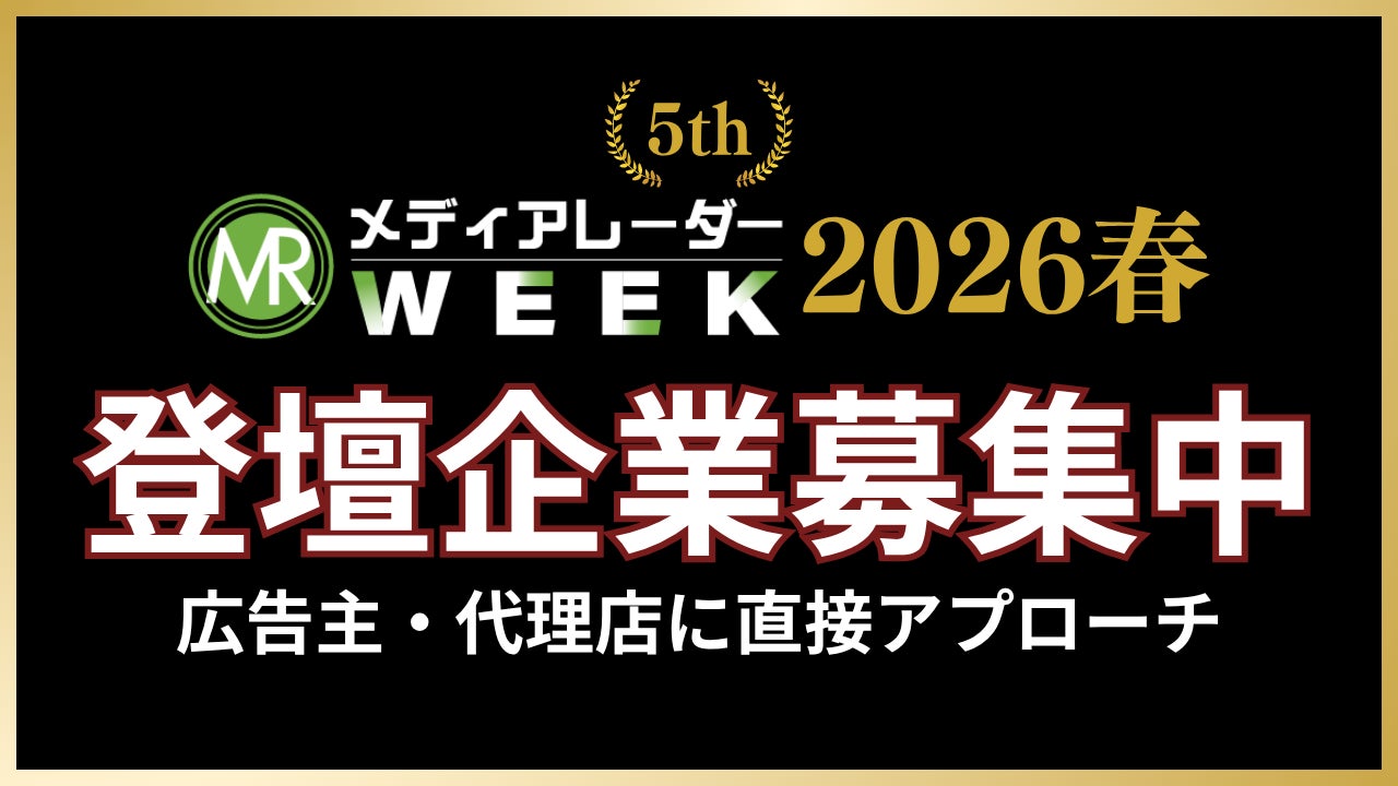 株式会社アイズ(所在地:東京都渋谷区、代表取締役社長:福島範幸、東証グロース:5242)が運営するNo.1*¹の広告業界のプラットフォーム「メディアレーダー」は、主催する「第21回 メディアレーダーWEEK 2026 春」の登壇企業の募集を開始しました。