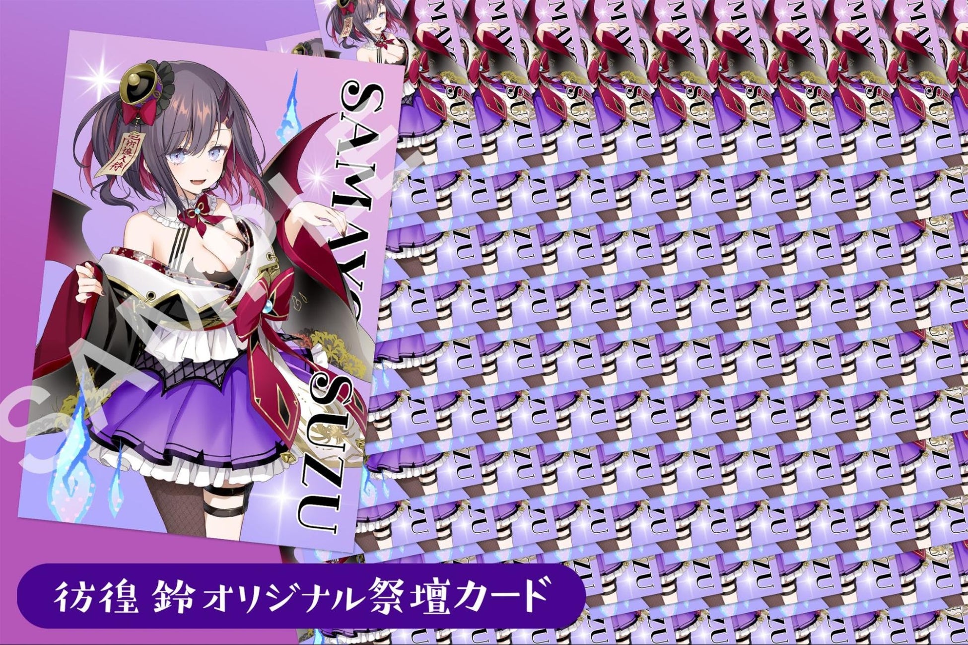 お祝い用の祭壇を手軽に作れる「彷徨 鈴オリジナル祭壇カード」です。RGB印刷という手法を使いできるだけ良い発色で再現できるよう心がけて制作したカード(ポストカードサイズ)です。「推しマカロン」やグッズと一緒に撮影すれば、彷徨 鈴の世界を一気に作り出すことができるこのアイテム。セットによって、最大100枚お届けするので、部屋を埋め尽くしてお楽しみください。