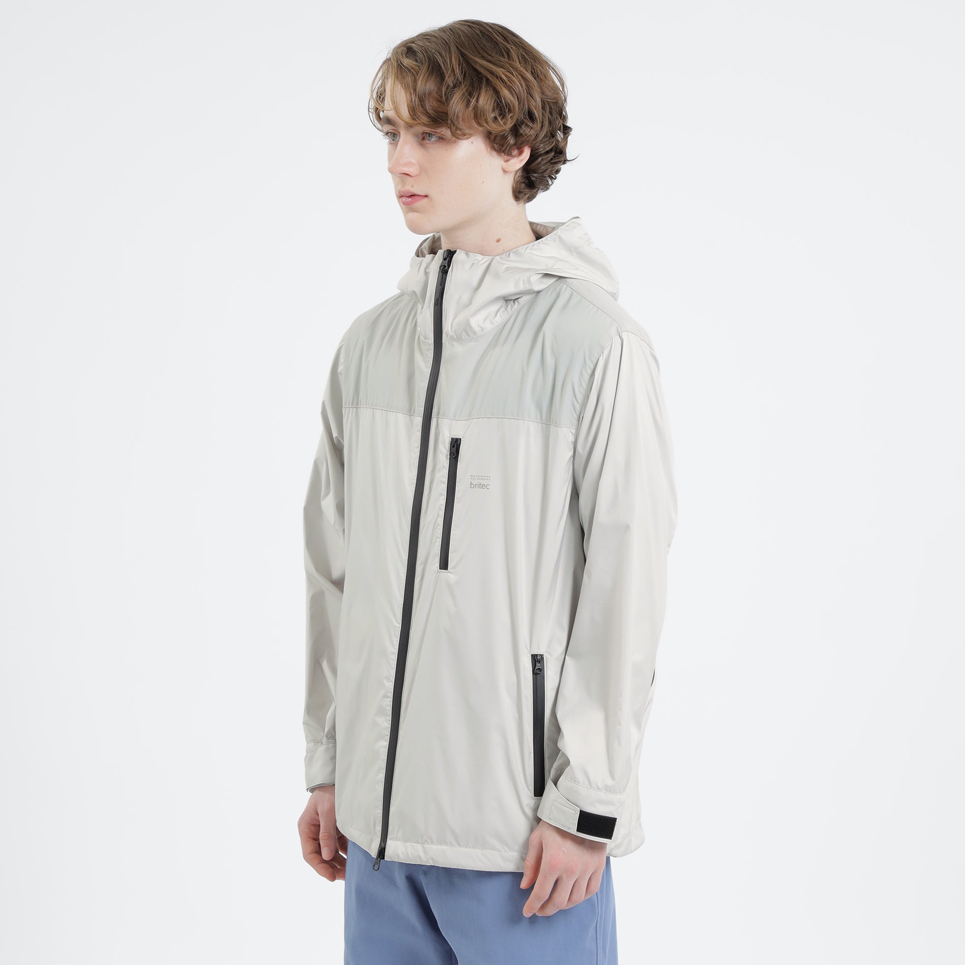 日常使いしやすいショート丈のフーデッドパーカー。フードを上まで閉めて、裾のドローコードを絞ることで雨風を防ぐことができる本格的なアウトドアデザインを採用しました。