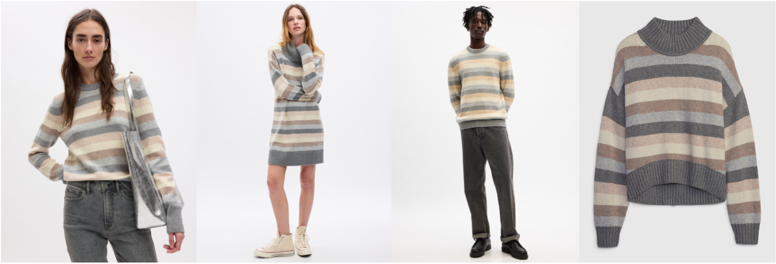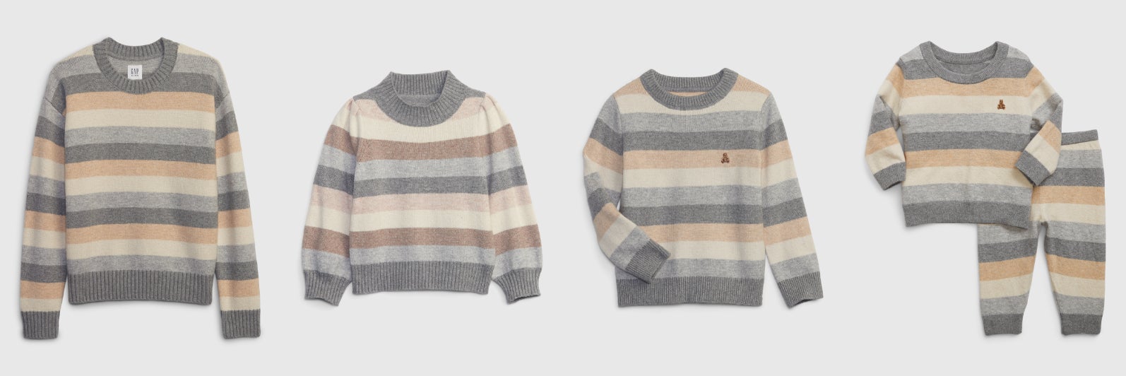 Gapのホリデーコレクションを象徴するストライプセーターが今年はニュートラルカラーで登場!