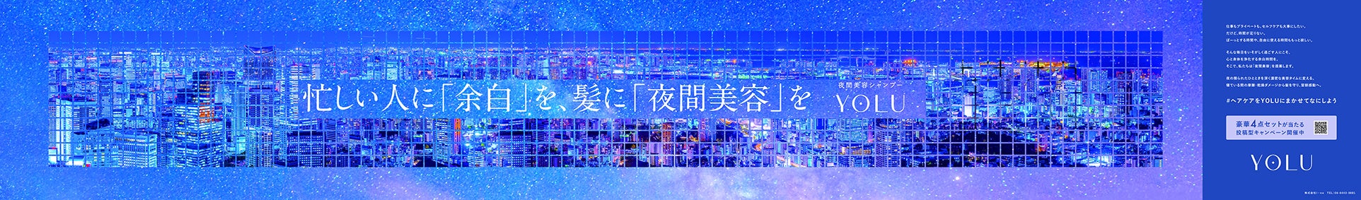 株式会社I-ne(本社:大阪市北区、代表取締役:大西洋平 証券コード:4933 以下I-ne)が展開するナイトケアビューティーブランド「YOLU(ヨル)」は、11月4日(金)より「#ヘアケアをYOLUにまかせてなにしよう」キャンペーンを開催します。SNSキャンペーンでは、計30名様にお好きなシリーズのYOLU4点セットが当たる投稿キャンペーンを実施。またキャンペーン開催に合わせまして、新宿メトロスーパープレミアムセットにて YOLUのメッセージを伝える「忙しい人に『余白』を、髪に『夜間美容』を」をコピーにしたピールオフ広告を掲出します。また、ピールオフ広告と連動してMetro Concourse Visionでは、デジタルOOH広告を掲出いたします。