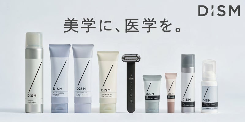 メンズスキンケアブランド「DISM」は、2021年に誕生した、シンプルで本格的なスキンケアをテーマとしたメンズスキンケアブランドです。2024年9月に、医学的な視点を取り入れ、男性の肌の糖化に着目したスキンケアブランドとして商品ラインナップをフルリニューアル、ブランドイメージを刷新いたしました。