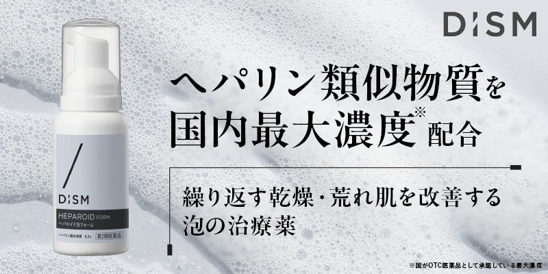 スキンケアブランド「DISM」よりブランド初の第2類医薬品「へパロイド泡フォーム」新発売 ヘパリン類似物質を国内最大濃度0.3%配合 繰り返す乾燥・荒れ肌を改善する泡の治療薬