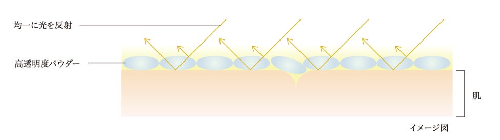 光を透過しながら均一でやわらかな光を反射する透明感の高いパウダーが光のヴェールを形成。 肌をなめらかに見せながら、透明感のある明るい仕上がりに。 着色剤を使わず透明感の高い粉体を厳選。水ツヤ肌にもシームレスに溶け込むようになじみ、 皮脂に濡れてもくすまず透明感ある仕上がりが持続します。