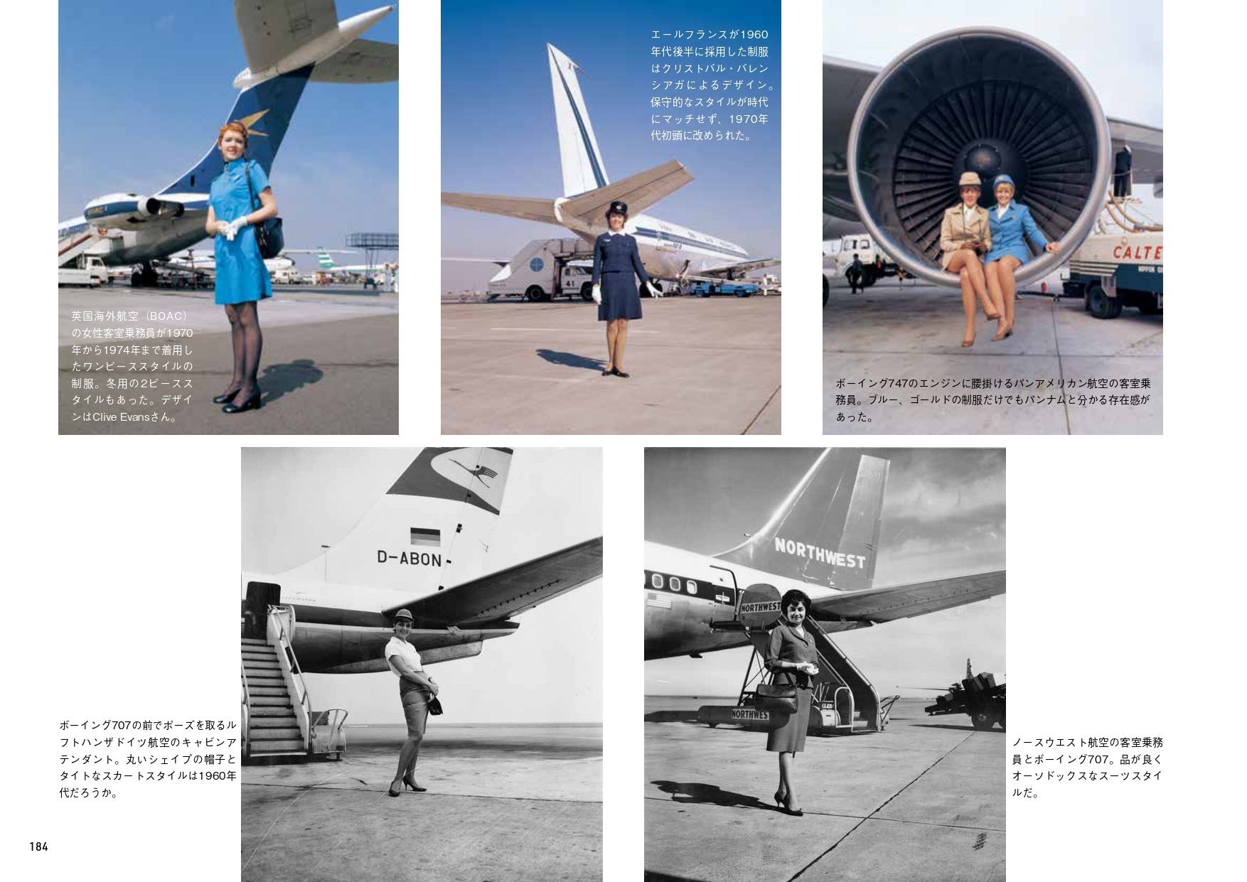 洋の東西を問わず、旅客機には古くから快適な空の旅をサポートするキャビンクルーが乗務してきた。彼ら、彼女たちは時に保安要員として、また時にはおもてなしのプロフェッショナルとして、世界の空を舞台に活躍。シーン8 では、1960~1970 年代を中心に、国内と各国エアラインの客室乗務員の華やかで凛々しい姿を振り返りたい。