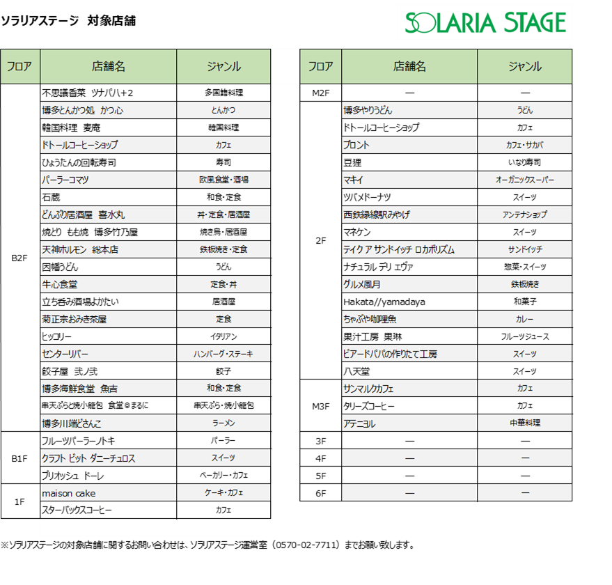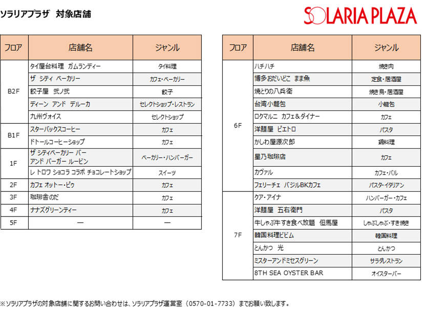 「ソラリアプラザ・ソラリアステージ限定!飲食・食物販店舗でnimocaポイント10倍キャンペーン!」