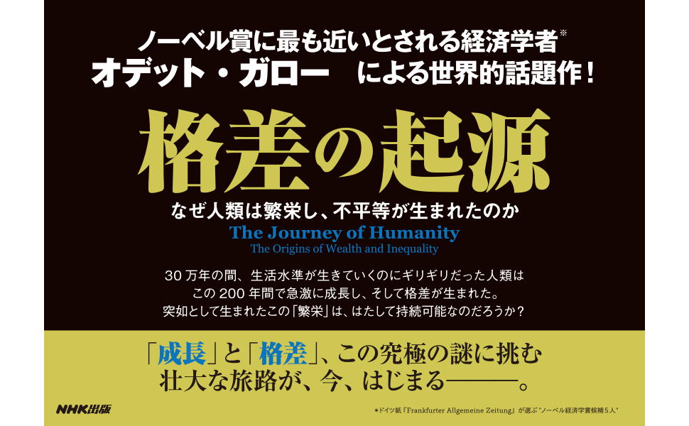 本書の最後には、格差解消のための指針も示されており、ガロー氏はこう結ぶ。「私が願うのは(中略)この格差の起源を理解して貧困の緩和に向けたより良い取り組み方を見つけ、人類全体の繁栄に役立てるようになることだ。(中略)読者が、先々待ち受ける今よりさらに豊かな未来を思い描き、その実現に向けて努力できるようになることを、私は願ってやまない。」