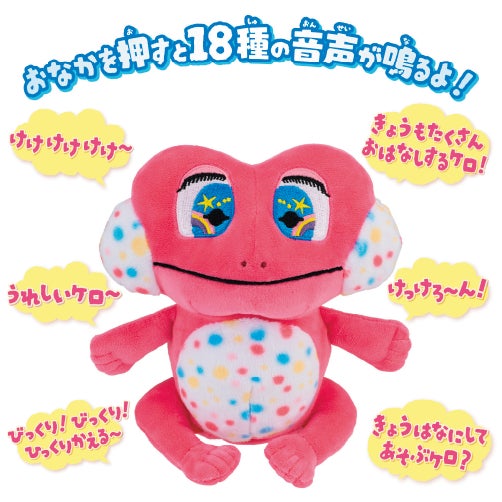 おなかを押すと18種の音声が鳴るぬいぐるみでけけちゃまとおしゃべりを楽しめます。