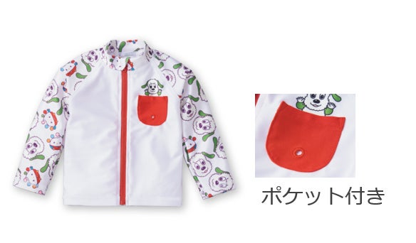 ワンワンのお顔がポイントのお洋服や、プール・海などで水遊びを楽しむラッシュガードもあります。
