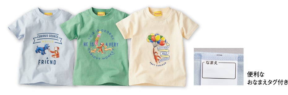 「Eテレキャラクター」フェア・「おさるのジョージ」フェアではお洋服だけでなく、保育園・幼稚園で役立つループ付きタオルや新生児から楽しめるおもちゃ、これからの季節に活躍するラッシュガードなどもご用意しております。