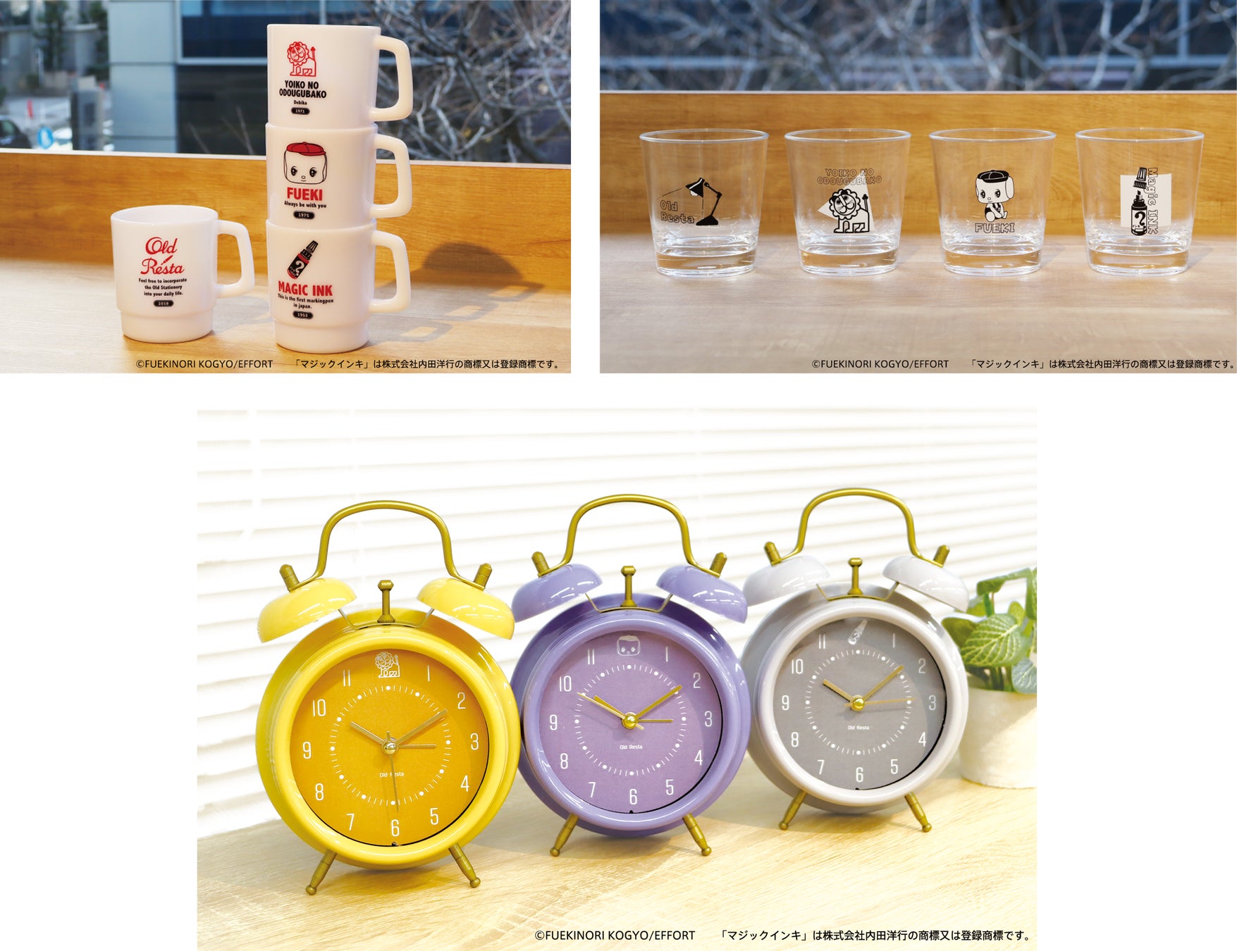 「Old Resta HOME」は、Old Restaの特徴である文具モチーフのかわいらしさはそのままに、シンプルなデザインに仕上げた雑貨のシリーズです。お部屋や職場で、大好きな文具モチーフをさりげなく取り入れたい、という方にぴったりです。新商品のラインナップはスタッキングマグ、アクリルコップ、目覚まし時計の3種類です。