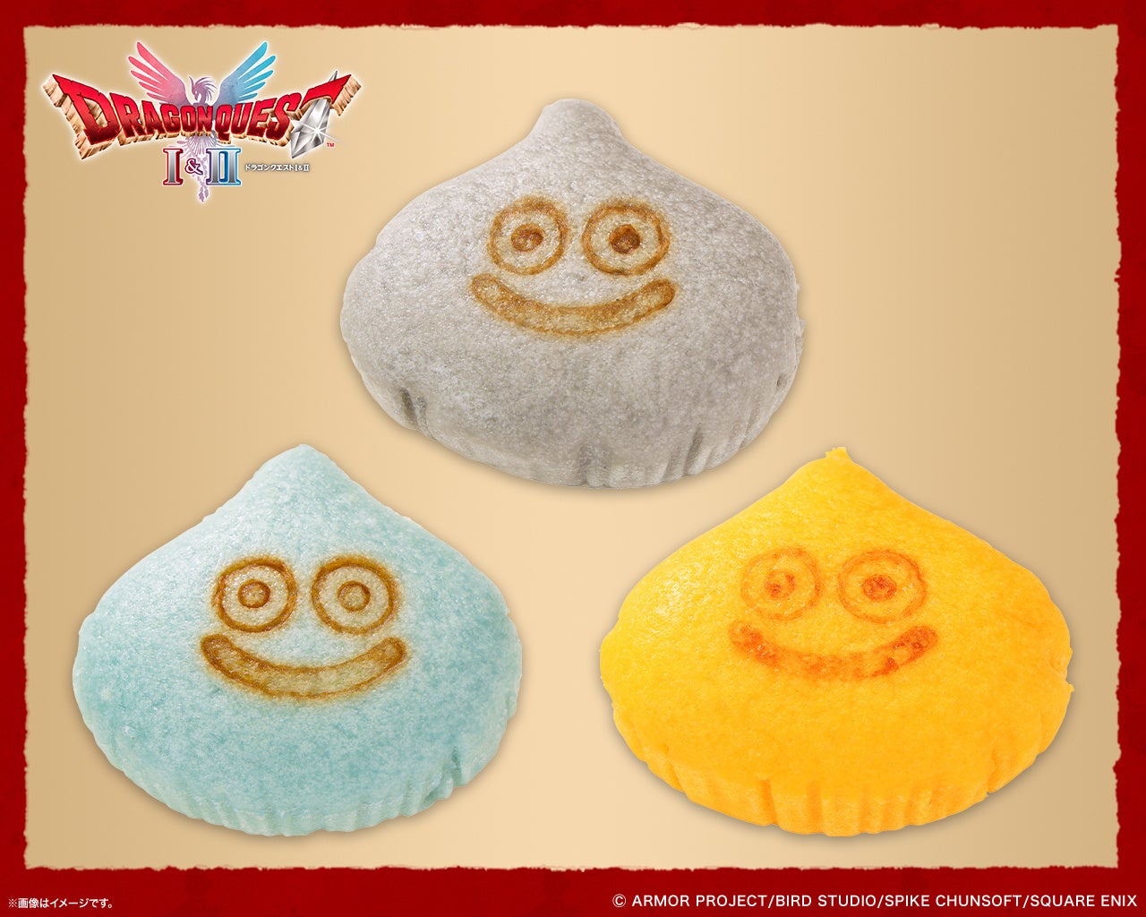 ローソンストア100にスライムむしパンがあらわれた!!作中に出てくるモンスター、スライムをイメージした蒸しパンです。『ドラゴンクエストI』と『ドラゴンクエストII』の発売年が“昭和”であったことから、昭和レトロフレーバー(昭和の喫茶店)をイメージしました。