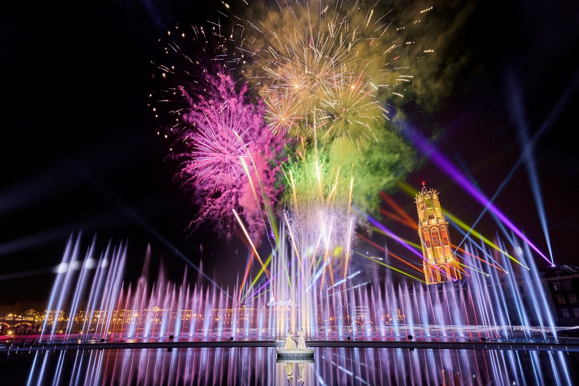 ハウステンボスのナイトショー「シャワー・オブ・ライツ」。アーティストの生歌に合わせて噴水やサーチライトが輝き、夜空には花火が打ち上がる、まるで夢のような世界が広がります。目の前で繰り広げられるこの迫力満点のショーは、最高の思い出になること間違いなしです!
