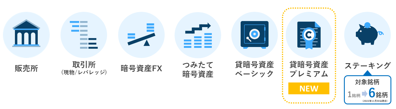 2022年9月、新サービス「貸暗号資産プレミアム」の提供を開始。「貸暗号資産プレミアム」は、お客さまが保有されている暗号資産をGMOコインに貸し出す「貸暗号資産」に、店頭デリバティブ取引である「円転特約」が付加されることで、年率15%以上という高いリターンが期待できるサービスです。