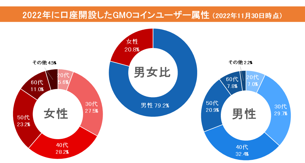 2022年に口座開設したユーザーを2021年までに口座開設したユーザーと比較すると、男女共に40代・50代の割合が増加し、20代の割合は減少する結果となりました
