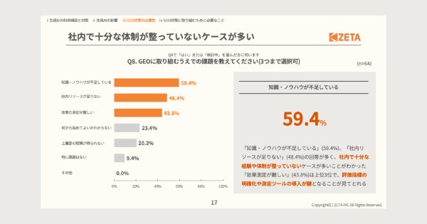 この結果から、GEO対策において人材・知識・検証体制の面で課題を感じている回答者が多いことがわかりました。