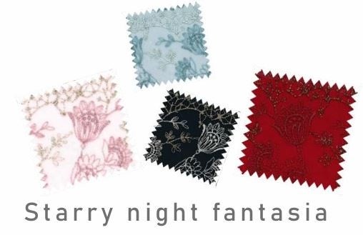 光沢糸できらめく星をあしらったエンブロイダリーレースが胸元を輝かせ、フェミニンな編みレースやマットなサテンが、この時期ならではのスペシャルなムードを演出します。