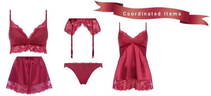 ランジェリーのバックスタイルやブラレットには、リボンがチャーミングなアクセントに。ガーターベルトなど、「夢みるブラⓇ DeepV」とコーディネートできるホリデーならではのアイテムもご用意しました。グラマラスなレッド、ロマンティックなピンクなど、4色それぞれ異なる表情も魅力です。