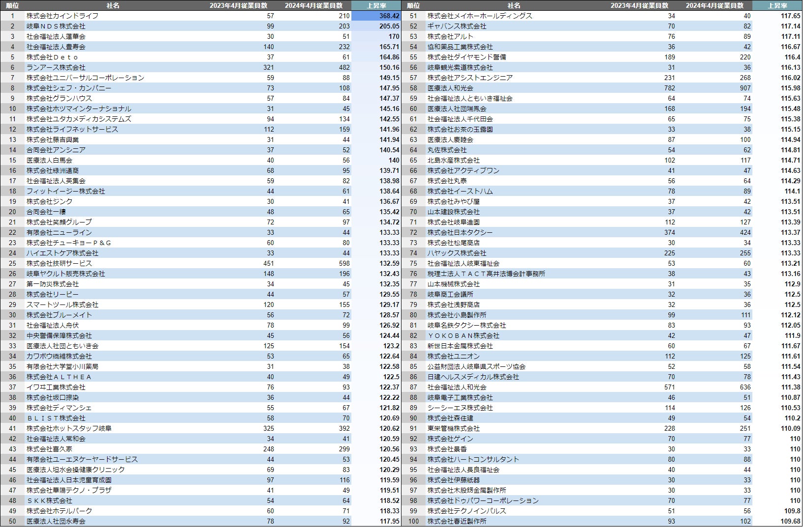 【岐阜市】成長企業ランキングTOP100!/SalesNow DBレポート