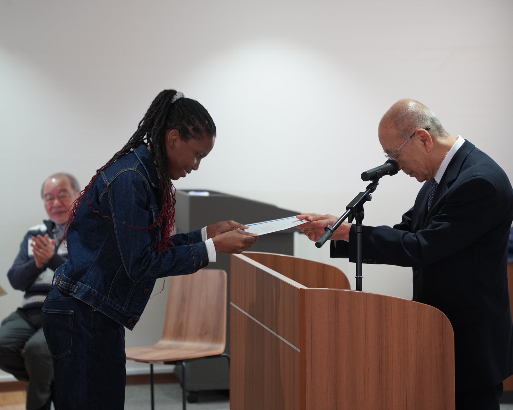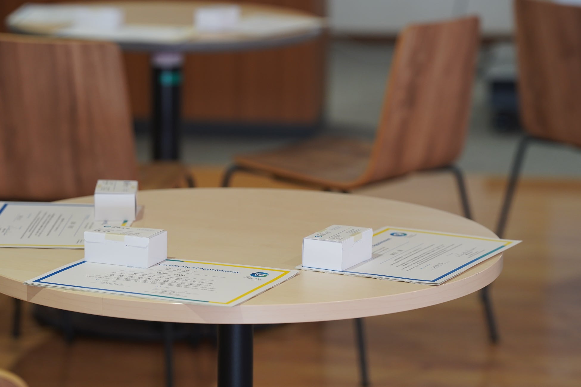 授与にあたって学長は、「大学のキーメッセージ ”Creating Shared Futures -未来をつくる仲間と出会う-”を体現し、大学の顔として社会とつながりながら、堂々と挑戦してください」と激励の言葉を送り、学生たちは真剣な表情で耳を傾けていました。任命証を受け取った学生たちの姿からは、新たな役割への決意と期待が感じられました。