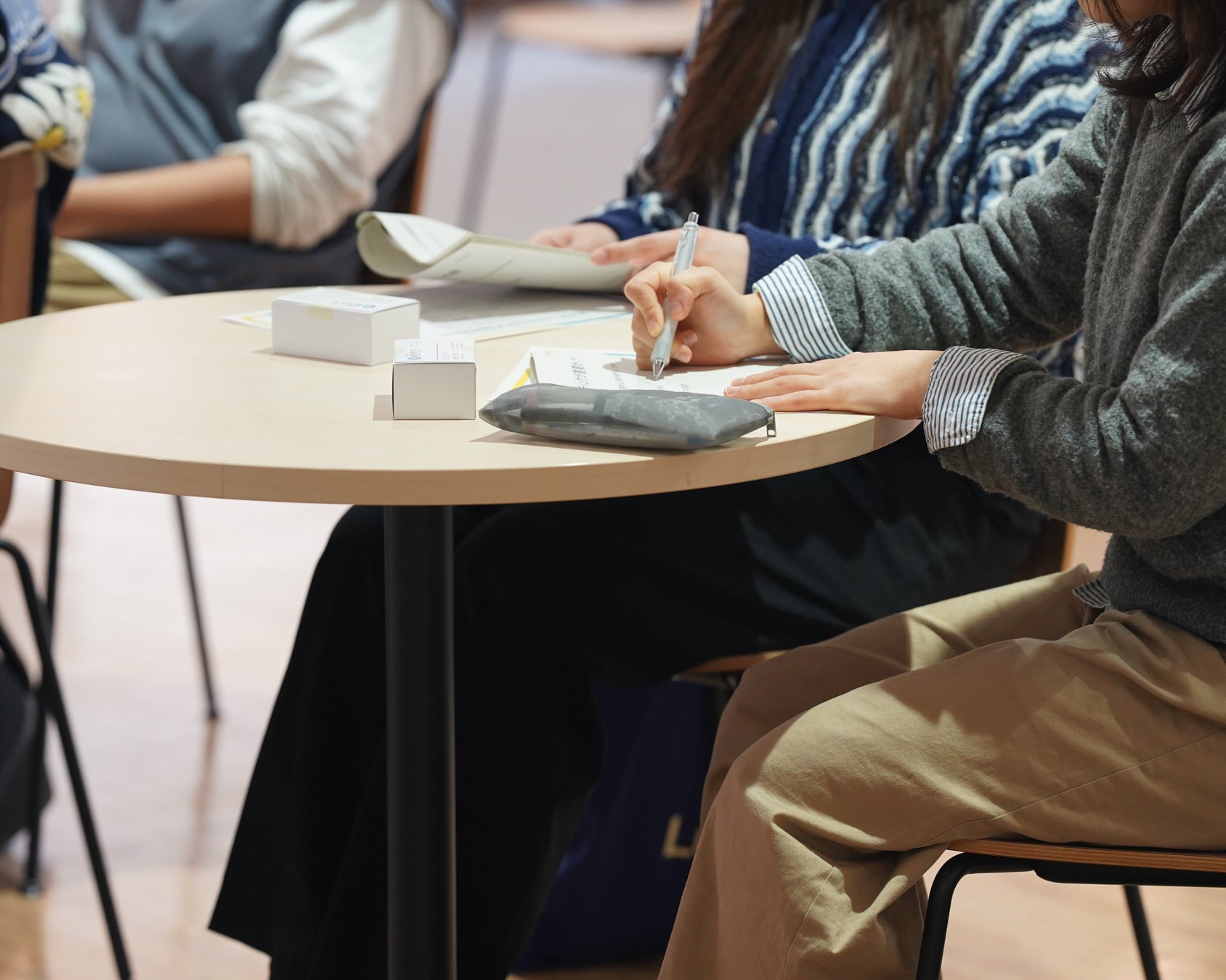 質疑応答の時間には、学生から「ブランドイメージはどのように意識してつくればよいのか」といった質問が寄せられました。これに対し高田様は、普段から青色のシャツを身に着けることで、自身の印象や信頼感を意識したセルフブランディングを行っているというエピソードを紹介。具体的で等身大の実践例に、学生たちからは「自分たちにもできそうなヒントがみつかった」といった声が聞かれました。