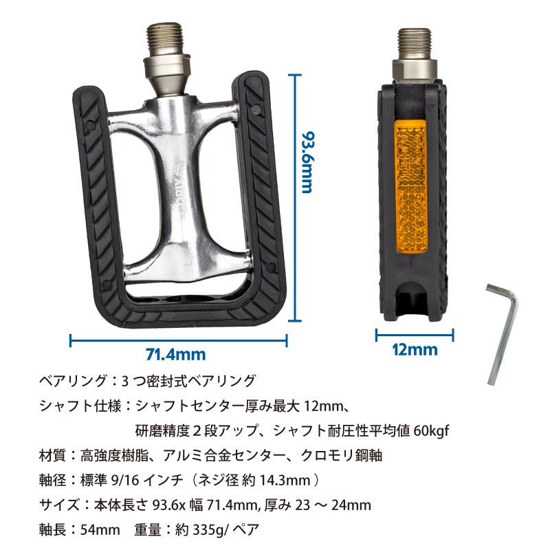 耐久性があり軽量なアルミ素材で、とても実用的なペダルです。
