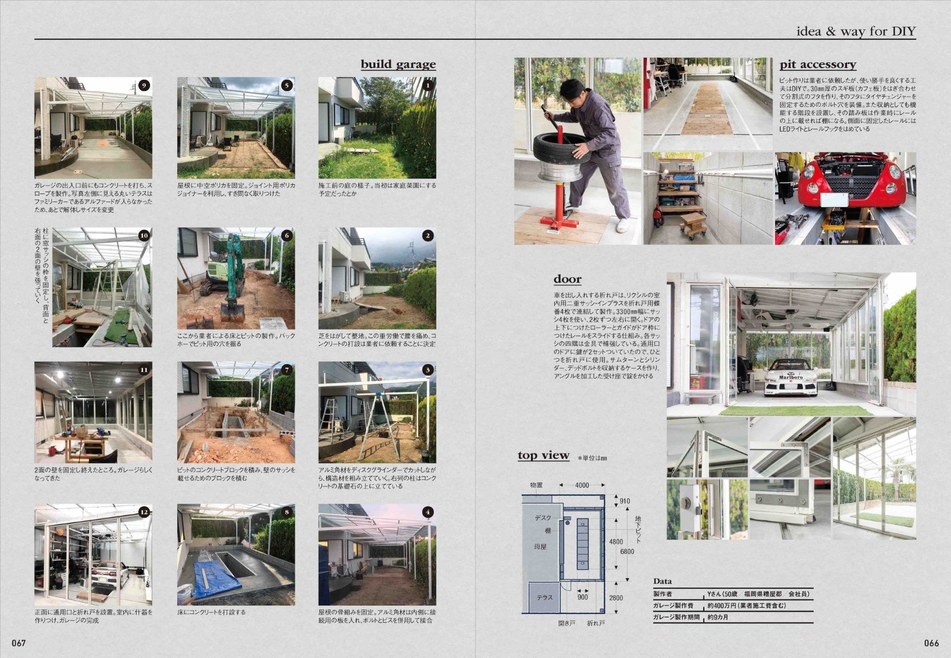 また、前述のリノベーションガレージ集においても、セルフビルドガレージ集においても、各ガレージで見つけたDIYならではのアイデアや、DIYにおける工夫をピックアップしています。憧れを掻き立てる風景とともに、DIYのための実用情報も豊富です。