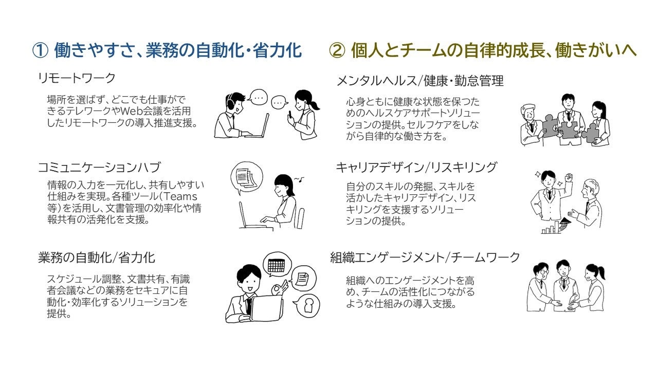「官庁・自治体向け業務スマート化支援ソリューション いつでもだれでも有識者会議調整アプリ」は、行政特化型ソフトウェア製品であり、従来の電子メールや文書での調整とは異なり、組織を超えて一つのプラットフォームで情報を共有し合うことができます。行政機関における内部管理業務の効率化やナレッジ共有、職員のエンゲージメント向上を目指す業務基盤を提供します。