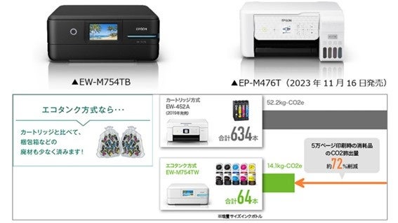 ■消耗品や包装材に関わる資源消費量削減となるエコタンク搭載モデル