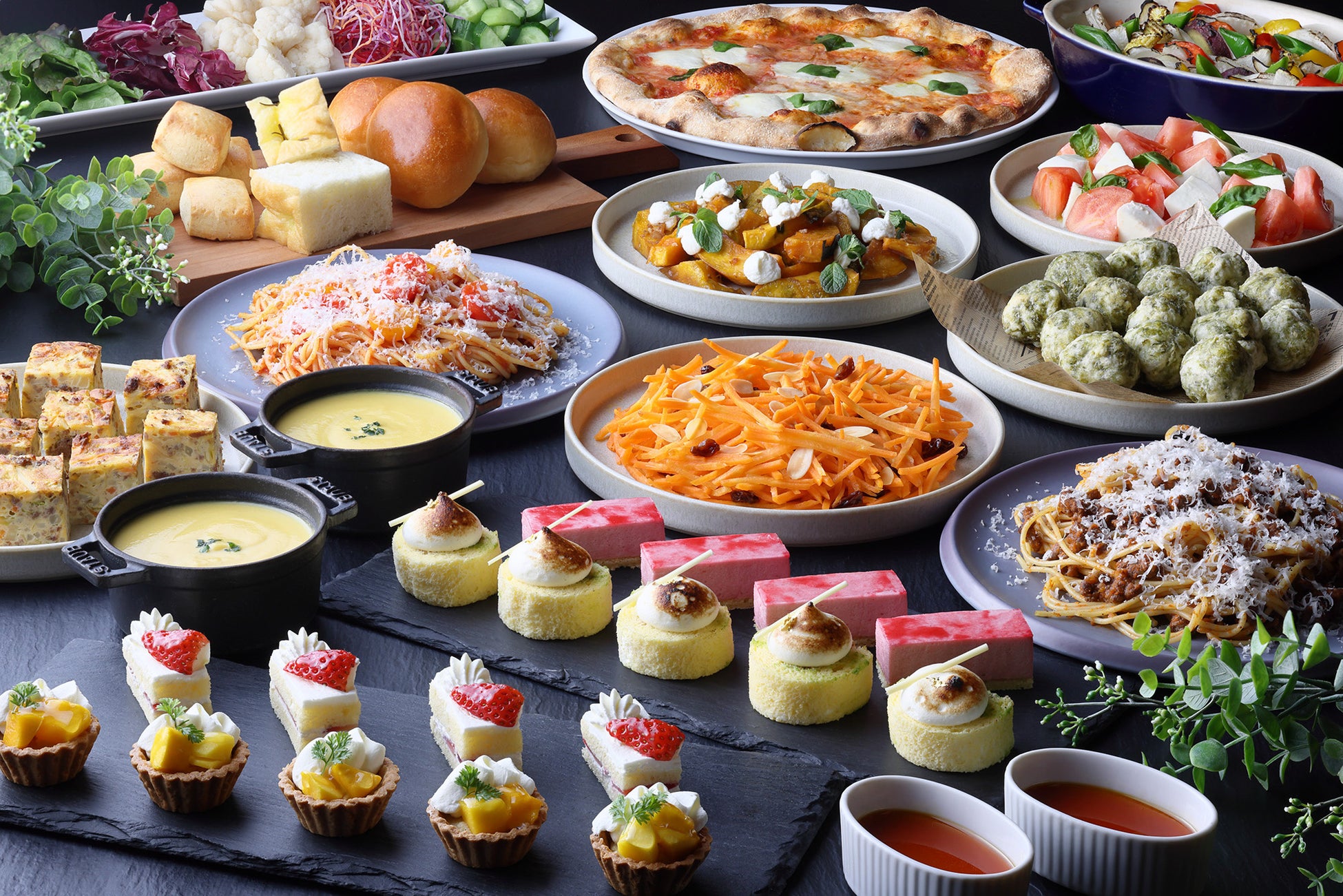 2025年4月にリニューアル1周年を迎えた事を機に、<美味しいイタリア料理を出来立てで>のコンセプトはそのままに、より魅力的なメニューへブラッシュアップいたします。ランチビュッフェでは、オーダーメニューを従来のパスタに加え、オプションメニューの肉・魚料理を含めて8種類をご用意し、食後のお楽しみスイーツも種類・内容ともより魅力的なラインナップへとリニューアル。また、従来オプションで提供しておりましたソフトドリンクバーは、今回よりランチビュッフェ・ディナービュッフェとも料金内でご利用いただけるようになりました。