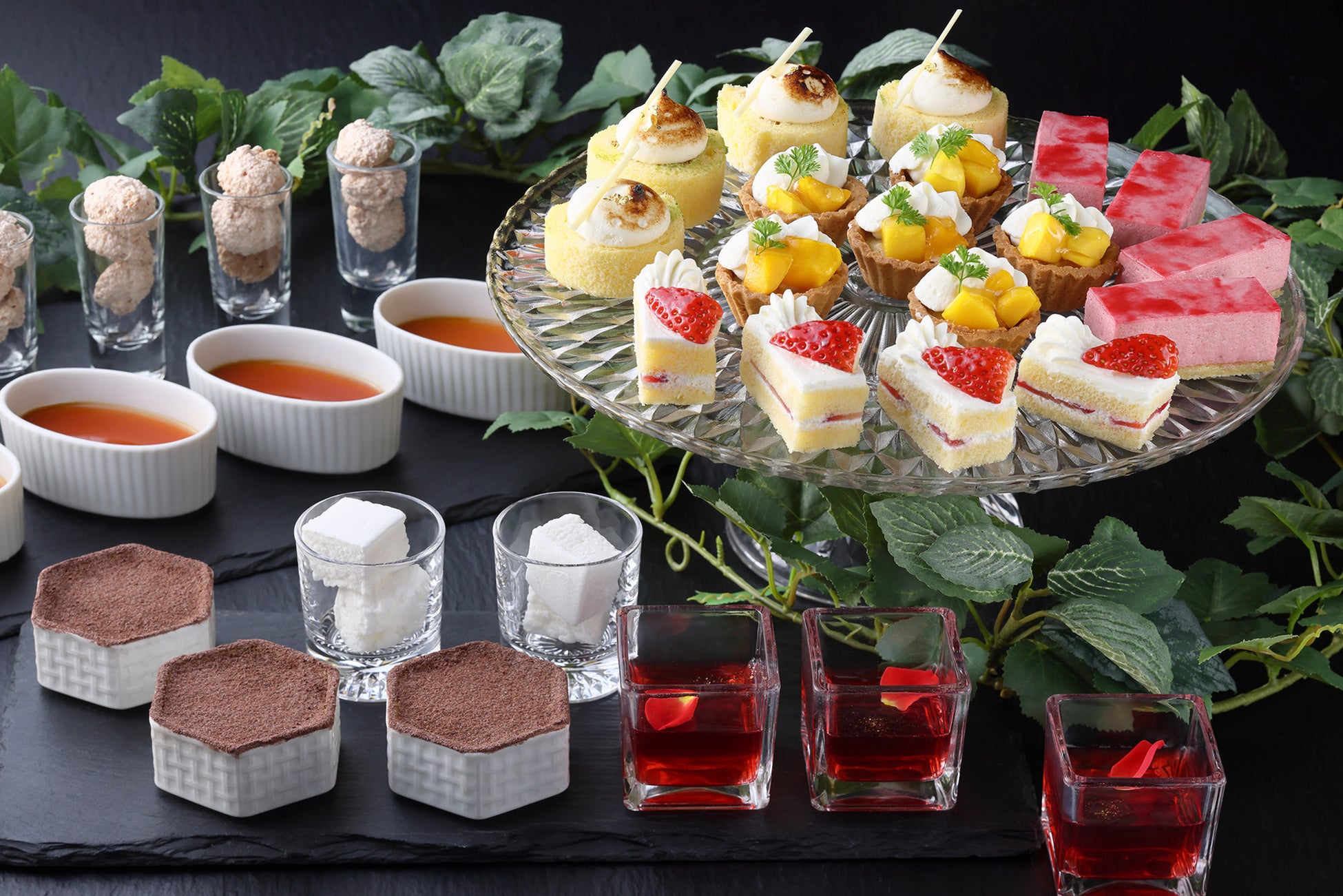 お席までお持ちするチョイスメニューは、定番のパスタから[ピッツァ クワトロフォルマッジ]や[アクアパッツァ]等のオプションを含め8種類をご用意。スイーツは琵琶湖ホテルで人気の[ショートケーキ]にもっちり触感が魅力の[びわ湖ロール]など約12種類がラインナップ。ソフトドリンクバー付きですので、女子会やご家族でのお集まりに最適です。