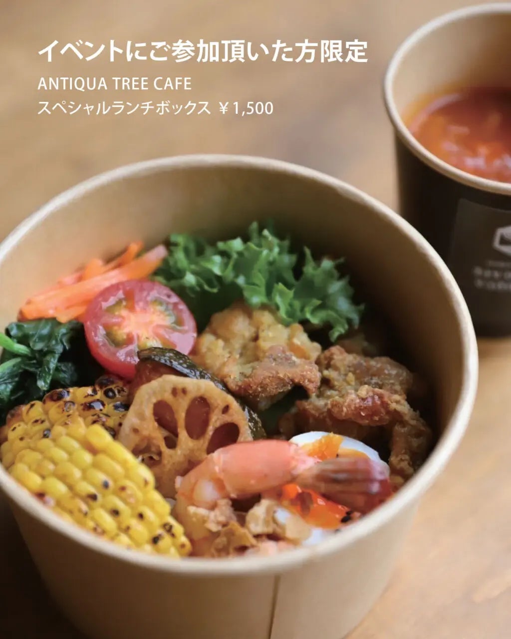 「ANTIQUA TREE CAFE」スペシャルランチボックス(¥1,500)は、イベント参加者だけが味わえる限定メニュー。