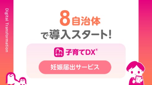 本サービスは3月から、新たに岡山県里庄町、長野県塩尻市で導入され、『子育てDX』の「質問票サービス」を含めると、同月で8自治体にて妊娠届出のデジタル申請支援を開始しています。なお、4月には約50自治体で『妊娠届出サービス』が導入される予定です。