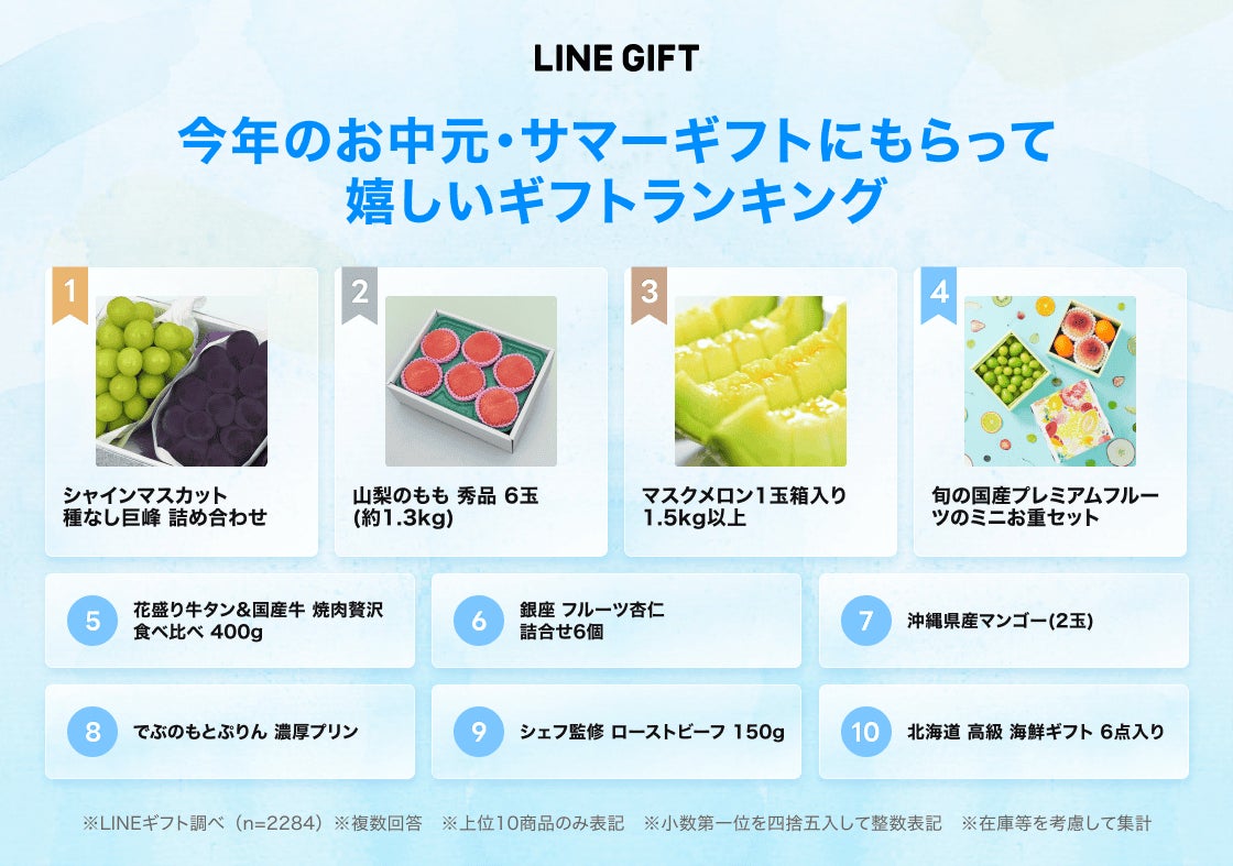 LINEギフトで「サマーギフト特集」を公開!人気急上昇中のフルーツが「もらって嬉しいサマーギフトランキング」上位を独占