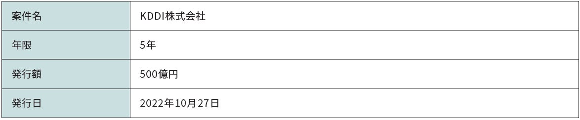 ソニー銀行株式会社(代表取締役社長:南 啓二/本社:東京都千代田区/以下 ソニー銀行)は、KDDI株式会社(以下 KDDI)が発行するサステナビリティボンド(以下 本債券)への投資を実施しましたのでお知らせいたします。