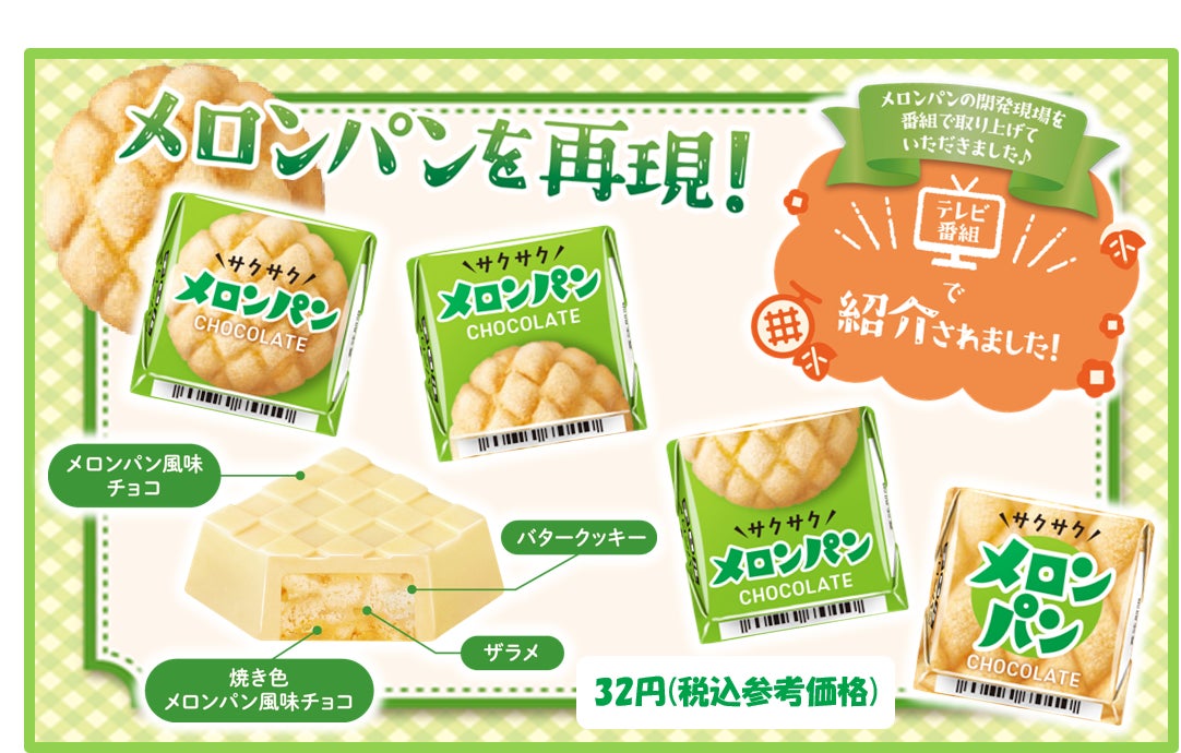 TVで紹介されました!発売前から話題の「チロルチョコ<メロンパン>」を5/16~全国で発売!