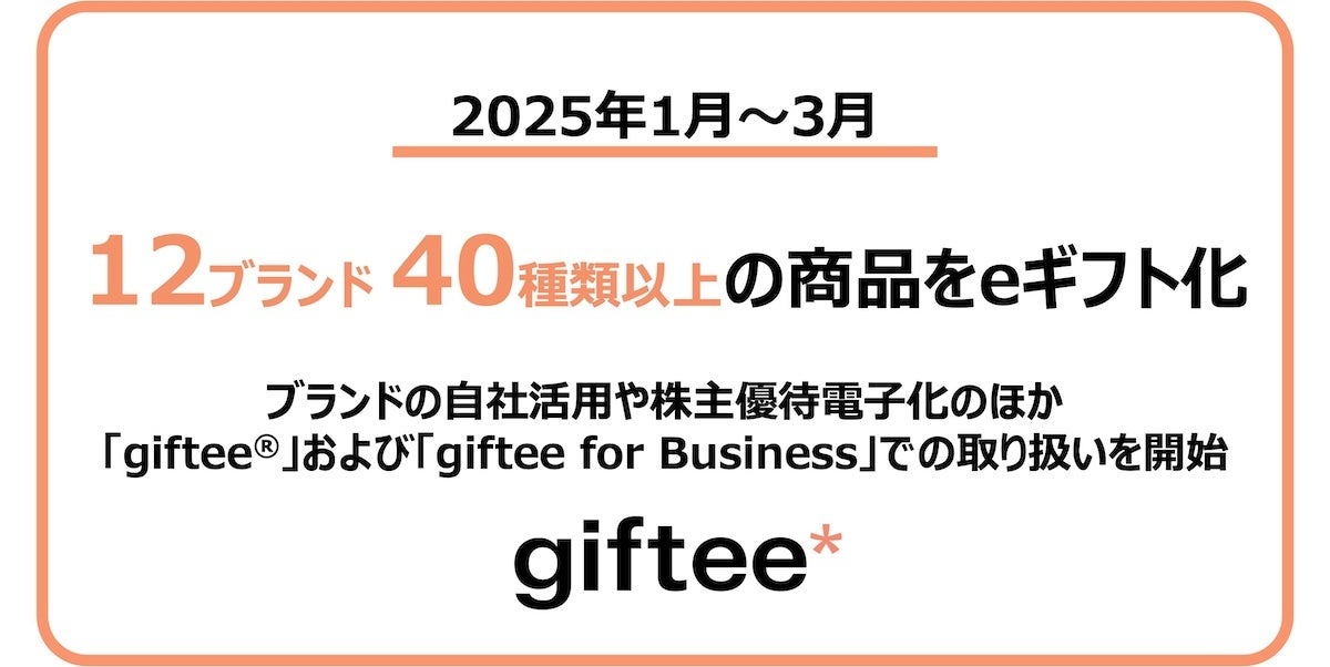 2025年1月〜3月に12ブランド40種類以上の商品をeギフト化 自社活用や株主優待電子化のほか「giftee®︎」および「giftee for Business」でのeギフトの取り扱いを開始