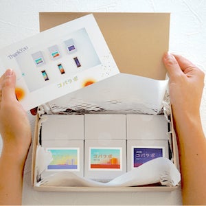 券種・価格(税込):「ひとくち羊羹コバラボ ギフトセット」¥3,150、「ひとくち羊羹コバラボ 3フレーバーセット」¥2,585、「ひとくち羊羹コバラボ 3箱セット」06:00覚醒のシナモン/17:00黄昏の塩/20:00静寂のココア 各2,585