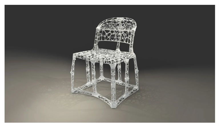 AIを活用したバーチャルツインと、デザイナーとエンジニアによる材料の効率的な活用を融合。生体模倣(バイオミメティクス)とデータを活用し、組み立て不要の3Dプリントに最適化された椅子の設計を実現