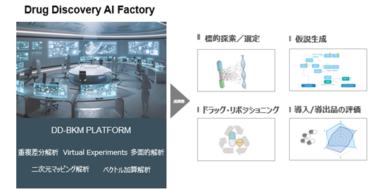 AIと創薬研究者が融合し、標的探索・仮説生成をはじめとする顧客ニーズに対応、創薬研究の大幅な効率化・加速化・成功確率向上を支援