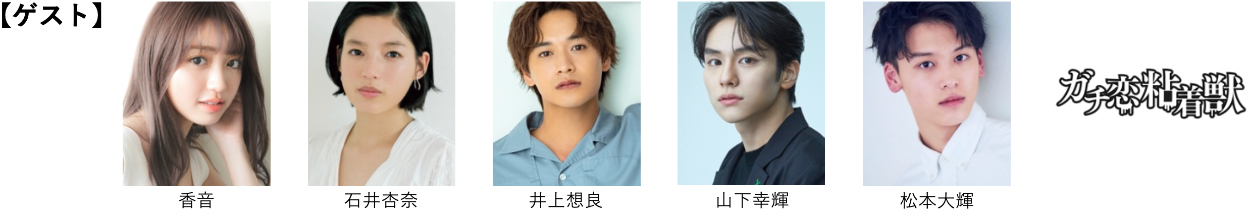 純粋で真っ直ぐな「恋心」はいつしか「ガチ恋」に変わり、「好意」は「憎悪」に変化する…?人気動画配信者に“ガチ恋”をしたファンが過激な恋愛バトルを繰り広げる一方、「人を愛することの尊さ」や「ネット社会での人と人とのコミュニケーション」など現代社会を映し出すようなテーマも描かれ、恐怖と共感が交錯するストーリーテリングが話題を呼んでいるドラマ「ガチ恋粘着獣」から、本作のW主演を務め、人気動画配信グループ「COSMIC」のメンバーにガチ恋をする女性ファン・輝夜雛姫(かぐやひなき)役で、推しへの暴走する恋心を“怪演”し話題を集めている香音と、先週4月22日(土)にOAされた第3話よりいよいよ登場!今後の展開に注目が集まる花織琴乃(はなおりことの)役の石井杏奈、さらに、「COSMIC」の個性的なメンバー3人を演じる、今、最も注目を集める人気若手俳優・井上想良、山下幸輝、松本大輝がTGC teenのランウェイに大集結!お見逃しなく!
