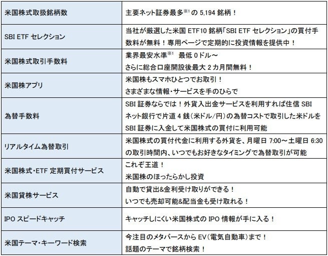 <SBI証券の米国株式投資サービス>