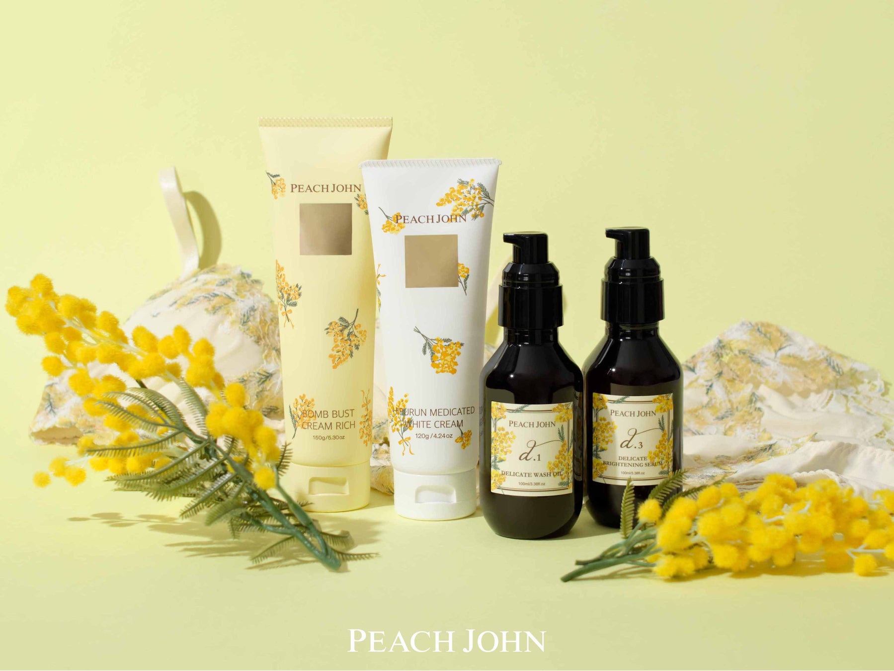 PEACH JOHNが春らしさ溢れるミモザ柄のアイテムを発売!大人気のブラやパジャマ、パーツケアビューティアイテムの限定デザイン・香りをラインナップ