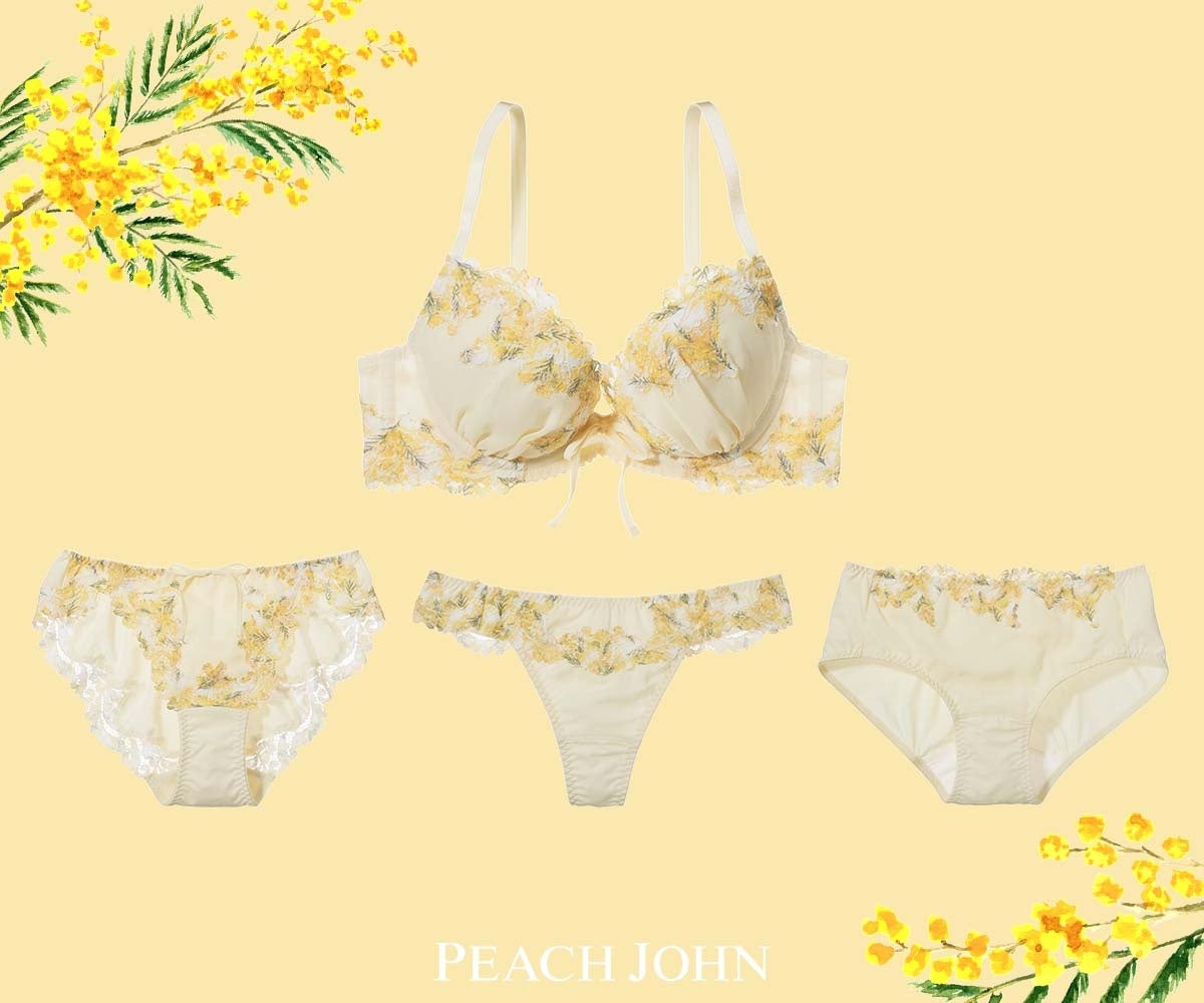 株式会社ピーチ・ジョン(本社:東京都港区 / 代表取締役社長:杤尾学)は、春らしさ溢れる”ミモザ柄”のブラやパジャマ、PEACH JOHN BEAUTYのパーツケアアイテムを発売しました。
